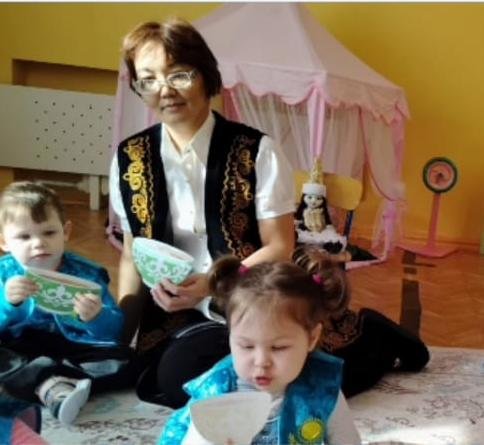 «Адал азамат» бағдарламасы аясында «Теремок» кіші тобының балалары «Шай ішейік» ұлттық ойынын ойнады. Ойын балаларға қуаныш пен жарқын әсер сыйлады. Тәрбиешілер: Нұржанова Б.Ж. Бейгүл Ю. Н.