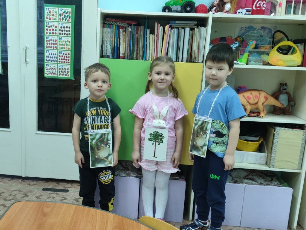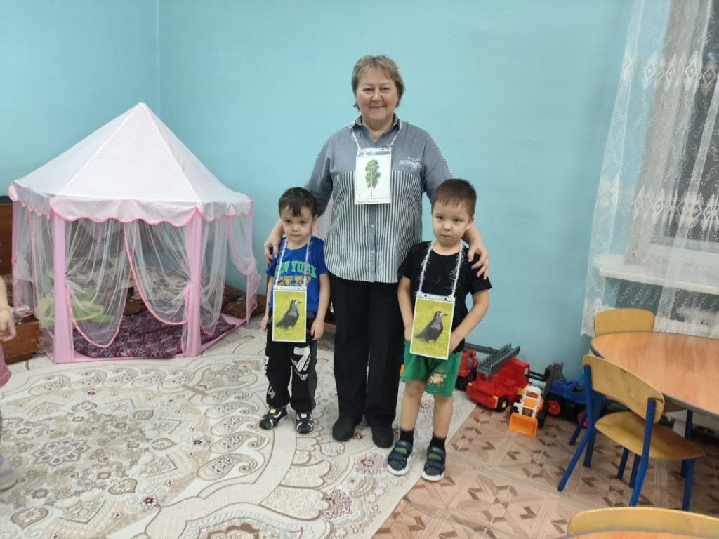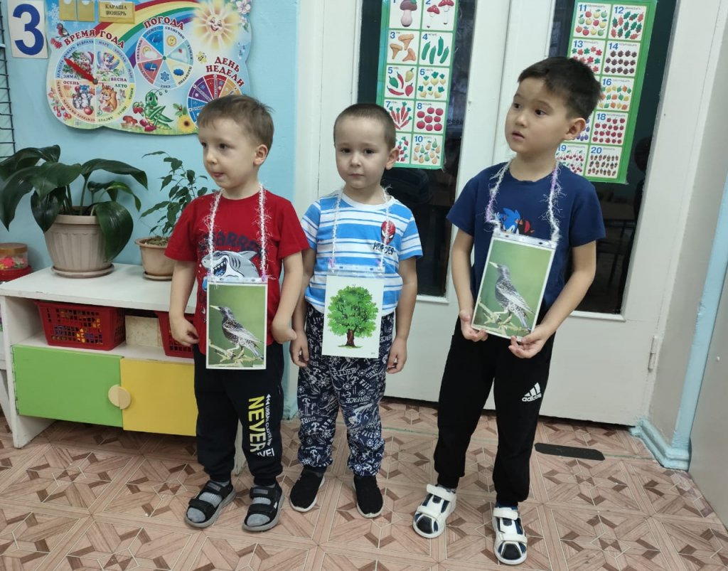 «Сказкаі» тобында «Айналамыздағы ағаштар» экологиялық жобасы аясында «Ағаштағы құстар» тақырыбында МДҰ өтті. Балалар ағаштардың бейнелерін қарап, олардың сыртқы ерекшелік белгілерін белгіледі, олардың атауларын қайталайды; құстар туралы жұмбақтарды болжап, оларды сыртқы келбетімен ажыратуға үйренеді; «Ағаштағы құстар» дидактикалық ойынын ойнады. Ойын кезінде балалар белсенді, мұқият болды, тапсырмаларды дұрыс орындауға тырысты. Ойын экологиялық ойлауды, байқаушылықты және жұптасып және шағын топпен жұмыс істей білуді дамытуға ықпал етті.