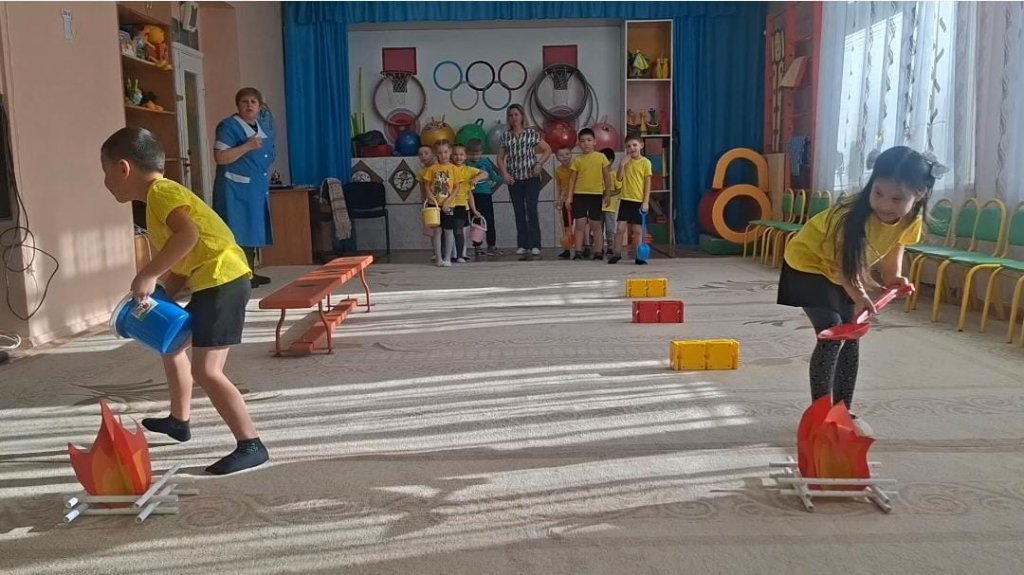 Сондай-ақ, «Өрт сөндіру» эстафетасы өткізілді: Қауіпсіздік қызметін шақыруды елестету, кедергілерді еңсеру.