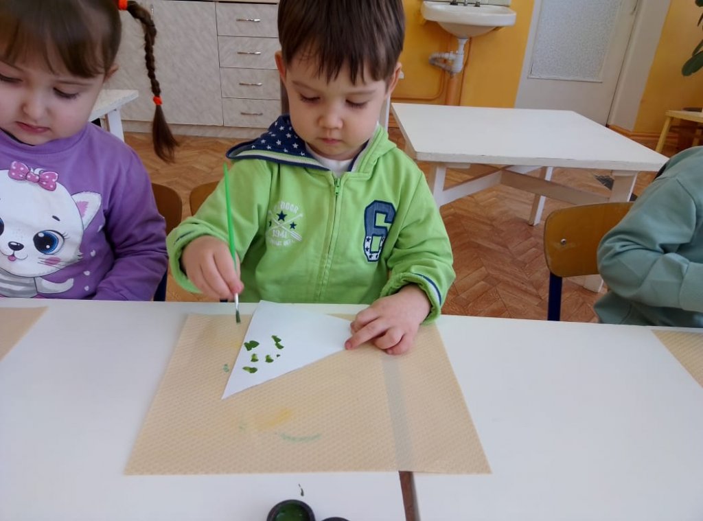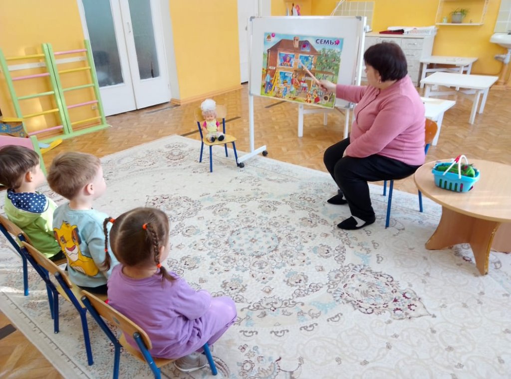 Кіші топта «Отбасы» тақырыбында көркем әдебиет және «Анаға арналған орамал» сурет элементтерімен біріктірілген сабақ өткізілді. Әңгімелесу барысында балалар алдағы аналар мерекесі туралы білді.