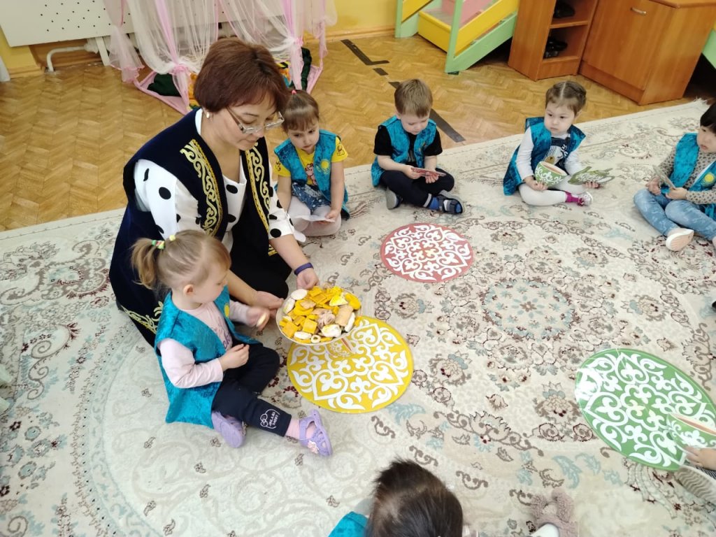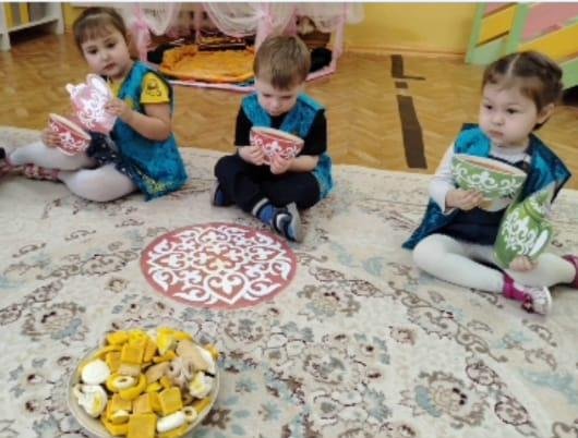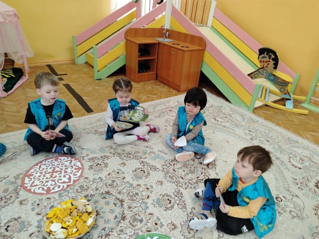 «Адал азамат» бағдарламасы аясында «Теремок» кіші тобының балалары «Шай ішейік» ұлттық ойынын ойнады. Ойын балаларға қуаныш пен жарқын әсер сыйлады. Тәрбиешілер: Нұржанова Б.Ж. Бейгүл Ю. Н.